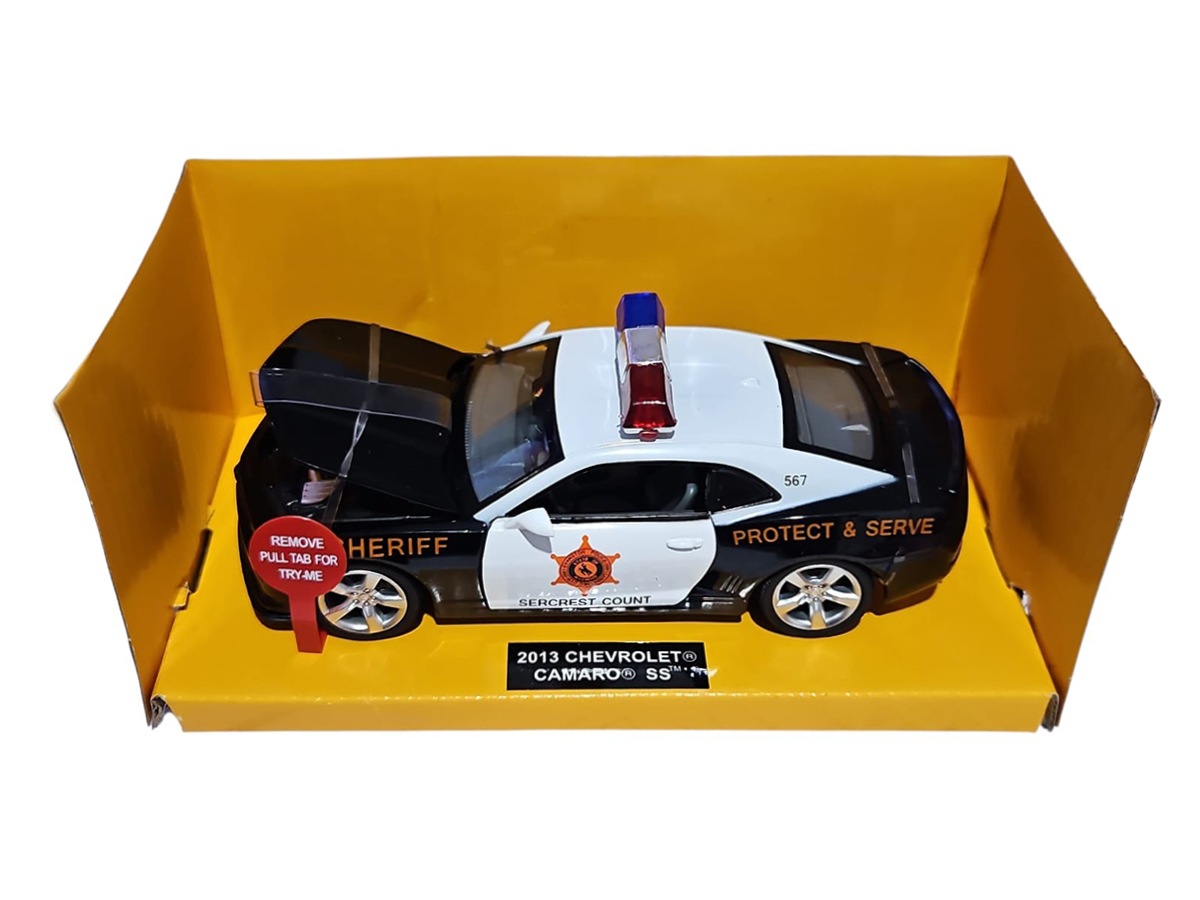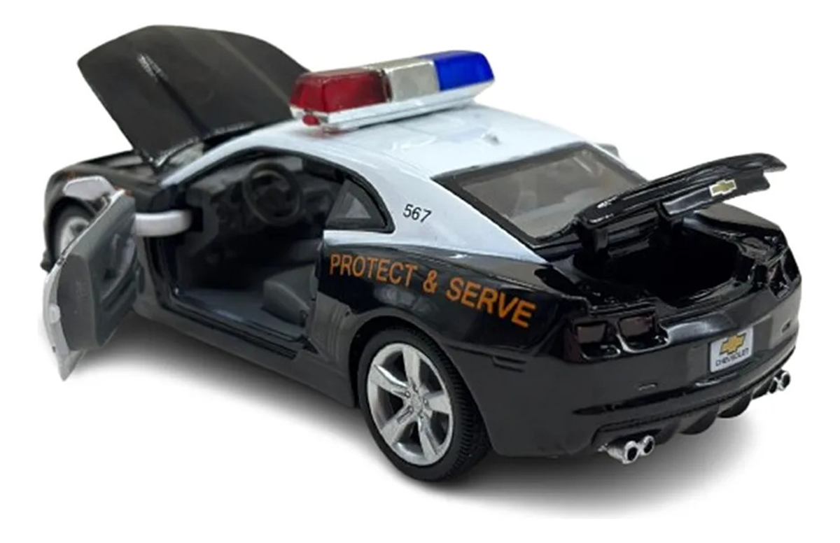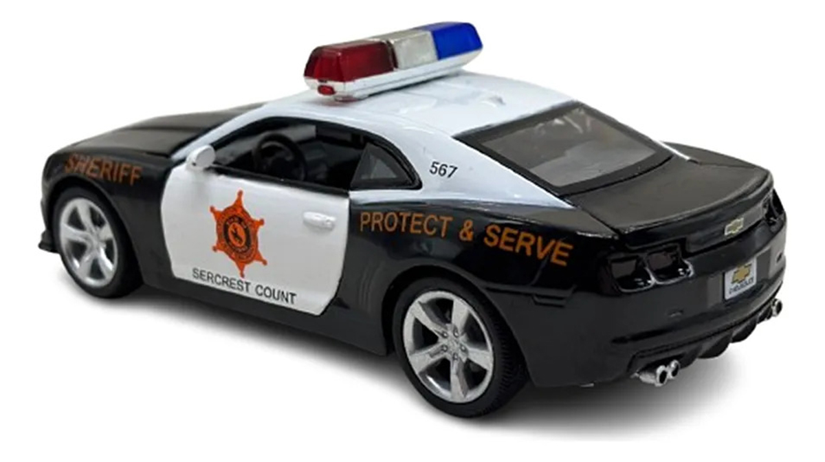 CARRO MINIATURA METAL CAMARO SS 2013 CHEVROLET SHERIFF 1:32 ACTION C/ SOM E LUZ – POTÊNCIA, REALISMO E AÇÃO NA SUA COLEÇÃO!Adicione força, imponência e estilo policial à sua coleção com o Camaro SS 2013 Chevrolet Sheriff em miniatura escala 1:32. Inspirado no icônico muscle car americano em versão viatura, este modelo combina visual agressivo, acabamento detalhado e recursos interativos que elevam a experiência de exposição e diversão.Produzido com estrutura em metal e detalhes em plástico de alta qualidade, o Camaro Sheriff apresenta pintura temática policial, proporções realistas e interior bem definido. As portas e capô funcionais revelam o interior do veículo, enquanto os efeitos de som e luz tornam a miniatura ainda mais envolvente, simulando a presença de um verdadeiro carro de patrulha.Principais Características:- Modelo: Chevrolet Camaro SS 2013 Sheriff- Escala: 1:32- Estrutura em metal com detalhes em plástico- Portas e capô que abrem, revelando interior detalhado- Efeitos sonoros realistas e luzes funcionais- Sistema de fricção, permitindo movimento ao puxar para trás- Pneus emborrachados para melhor acabamento e realismo- Design inspirado em viatura policial americana- Certificação INMETRO- Recomendado para crianças a partir de 3 anosPor que Comprar? Visual Imponente: O Camaro SS Sheriff se destaca pelo design esportivo aliado ao estilo policial. Riqueza de Detalhes: Acabamento fiel ao modelo real, ideal para colecionadores exigentes. Interatividade Completa: Sons, luzes e partes móveis tornam a miniatura mais dinâmica. Versatilidade: Perfeito tanto para coleção, decoração quanto para brincadeiras. Excelente Presente: Uma escolha certeira para fãs de carros esportivos e modelos policiais.INMETRO: 009644/2022Leve para sua coleção a força e a autoridade do Camaro SS 2013 Chevrolet Sheriff em miniatura e tenha um verdadeiro clássico americano em versão detalhada e interativa!Tags: camaro ss miniatura, camaro sheriff 1:32, carro miniatura metal, chevrolet camaro 2013, camaro policial, miniatura camaro ss, carro policial brinquedo, miniatura com som e luz, carro fricção 1:32, miniatura automotiva, camaro colecionável, carro com portas que abrem, miniatura chevrolet, muscle car miniatura, carro policial coleção, miniatura detalhada, carro brinquedo metal, camaro action, carro decorativo, miniatura realista.