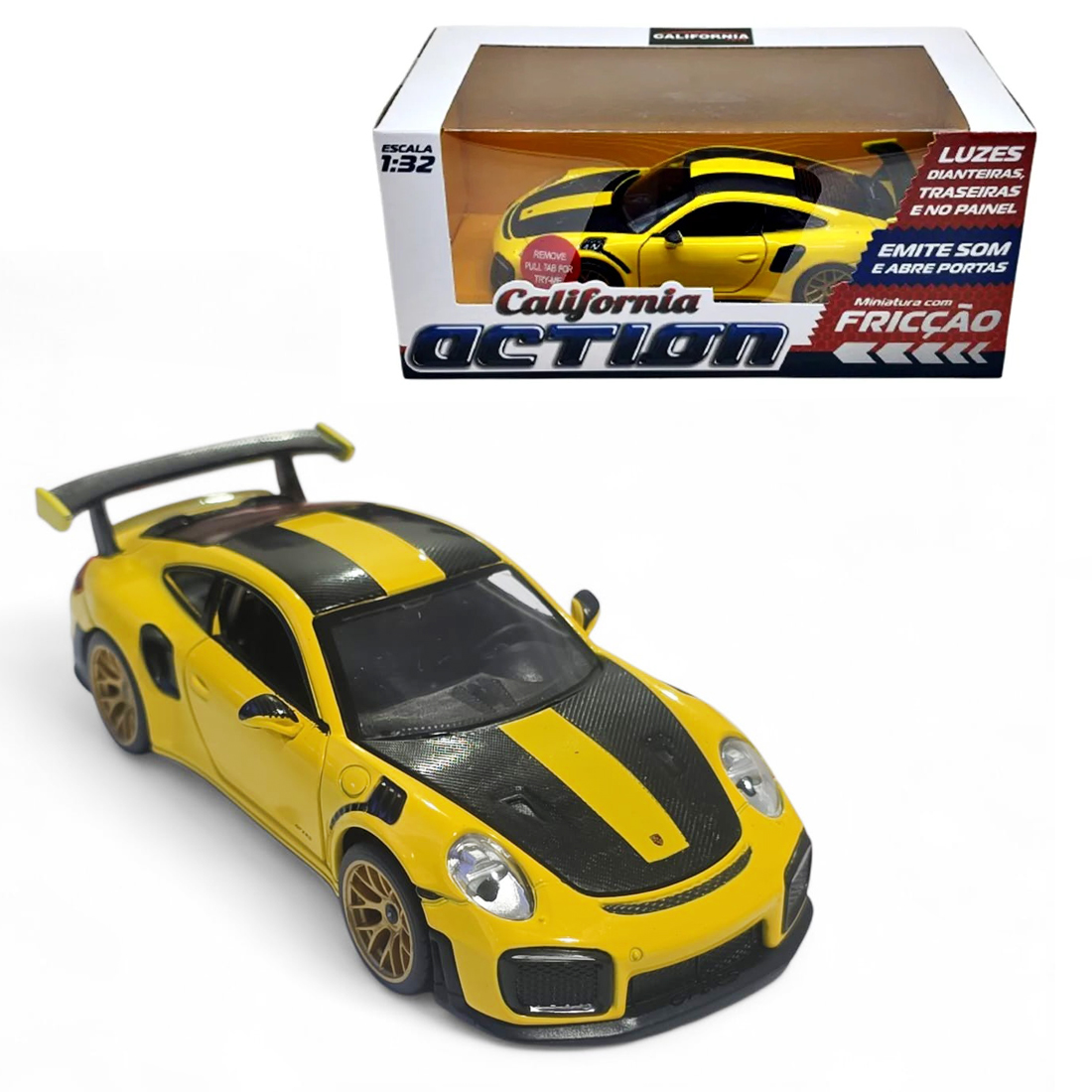 Carro Miniatura Metal Porsche 911 RS Amarelo 1:32 Action Som