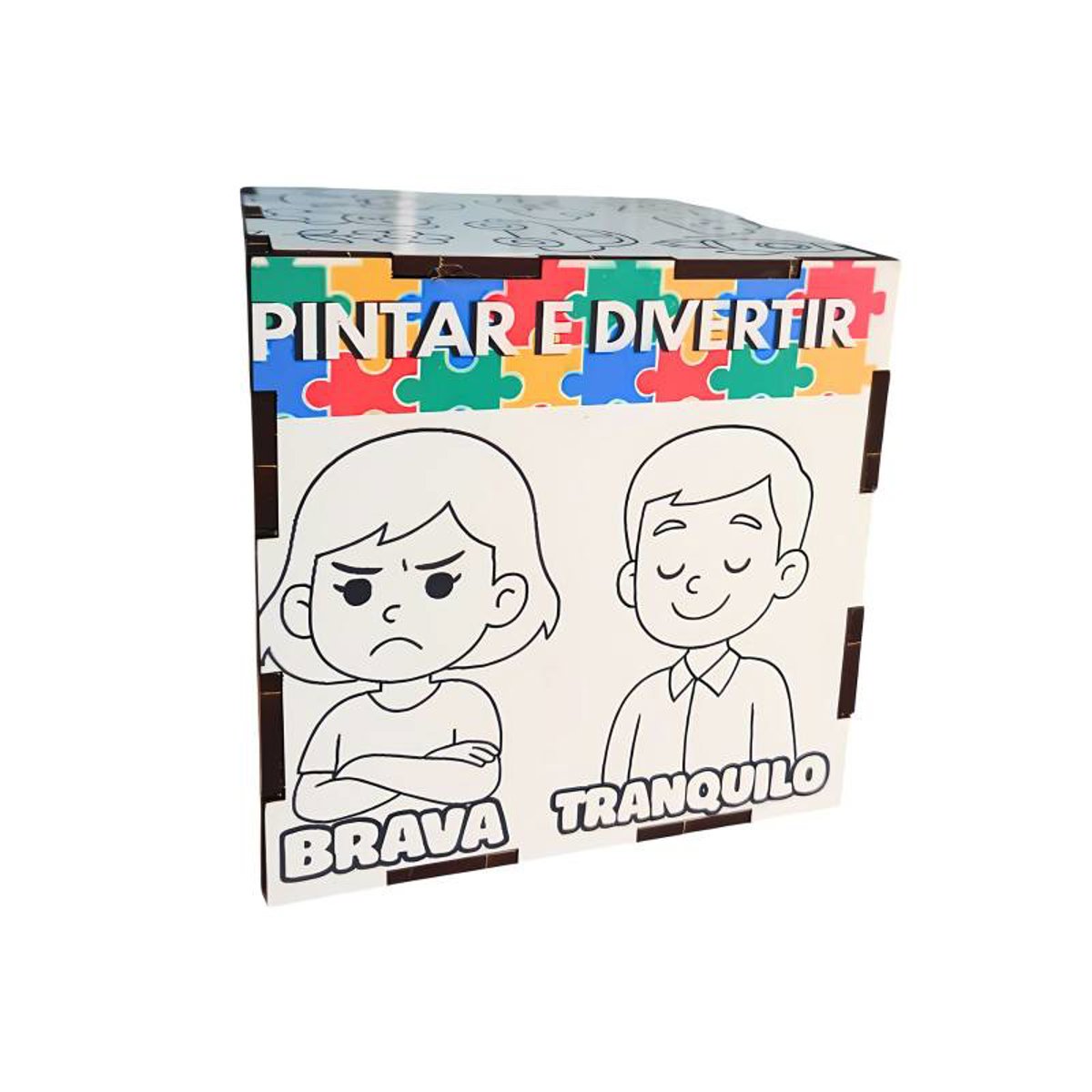 NOVODescubra uma forma única, sensível e criativa de ajudar crianças autistas a reconhecerem, expressarem e compreenderem melhor suas emoções com o Cubo Pintando as Emoções – uma ferramenta lúdica, terapêutica e altamente eficaz no desenvolvimento cognitivo e emocional infantil. Produzido em MDF de alta qualidade, o cubo traz em cada uma de suas faces um desenho diferente representando emoções, todos prontos para serem coloridos, explorados e vivenciados por meio da arte e da imaginação.