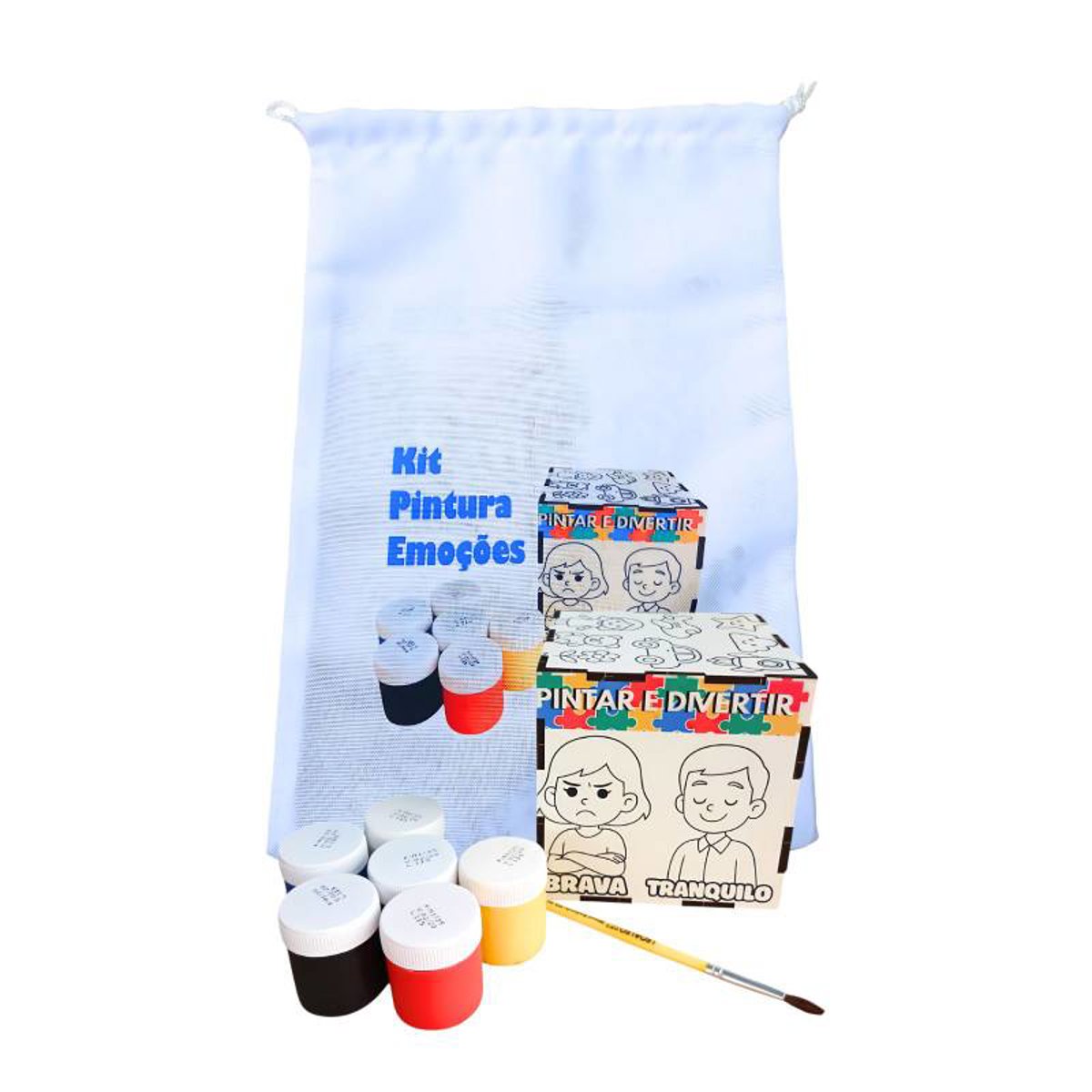 Cubo de Emoções para Colorir com Tinta Guache e Pincel Kit Infantil Divertido