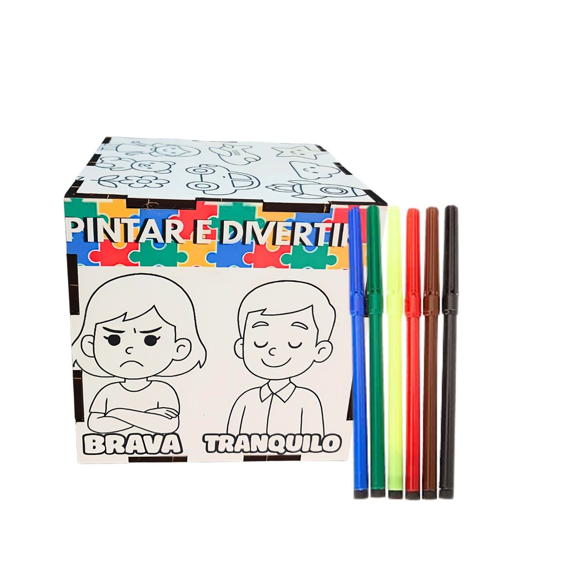 NOVOFeito de MDF, vem acompanhado de um conjunto de 6 canetinhas bem vivas.Cubo de MDF para pintar para Autistas com tema emoções com canetinhas Transforme o momento de aprendizado em uma experiência sensorial, criativa e profundamente significativa com o Cubo de MDF para Pintar para Autistas – Tema Emoções, agora acompanhado de um kit completo com canetinhas coloridas, ideal para despertar sentimentos, cores e conexões de forma prática, limpa e encantadora. Esta ferramenta foi desenvolvida com muito carinho para auxiliar no desenvolvimento cognitivo e emocional de crianças com Transtorno do Espectro Autista (TEA), promovendo o autoconhecimento, a expressão dos sentimentos e a interação com o mundo ao redor – tudo isso de maneira lúdica, afetuosa e acessível. Fabricado em MDF resistente e seguro, o cubo apresenta seis faces ilustradas com emoções básicas.. Os desenhos têm traços simples, expressivos e amigáveis, perfeitos para serem coloridos com as canetinhas inclusas. Ao pintar cada emoção, a criança desenvolve habilidades como coordenação motora fina, foco e criatividade, enquanto aprende a reconhecer, identificar e expressar sentimentos que muitas vezes ainda não consegue verbalizar com facilidade. E para completar essa experiência única, o cubo vem em uma embalagem super especial: um lindo saquinho de tecido estampado com uma arte em preto e branco, criada para ser colorida também pela criança. Isso mesmo: até a embalagem vira parte da atividade, ampliando o estímulo criativo e sensorial. Se você procura um material inclusivo, educativo e cheio de afeto, o Cubo de MDF para Pintar com Canetinhas – Tema Emoções para Autistas é a escolha ideal. Uma forma encantadora de unir arte, desenvolvimento emocional e vínculo em uma única experiência. Leve agora para casa ou para seu espaço terapêutico e permita que as emoções ganhem cor, nome e significado no dia a dia das crianças. IMPORTANTE: O modelo do kit de canetinhas pode variar e será enviado conforme a disponibilidade de estoque. Características do produto: Material : MDF Medidas : 10X10X10 cm Saquinho : 20X15 cm Kit Canetinhas Coloridas : 6 cores