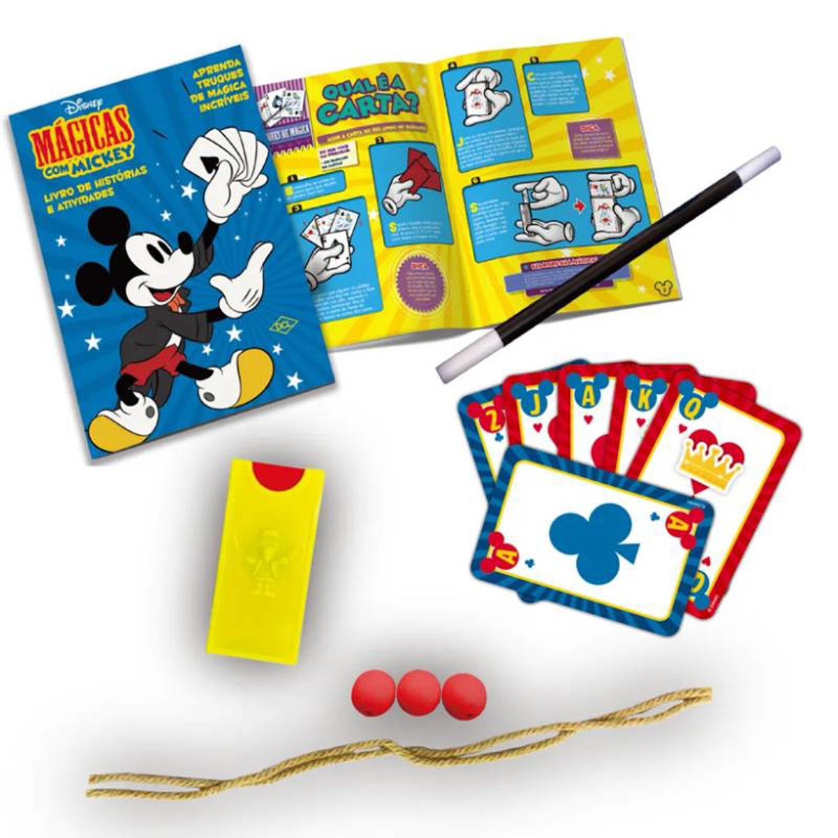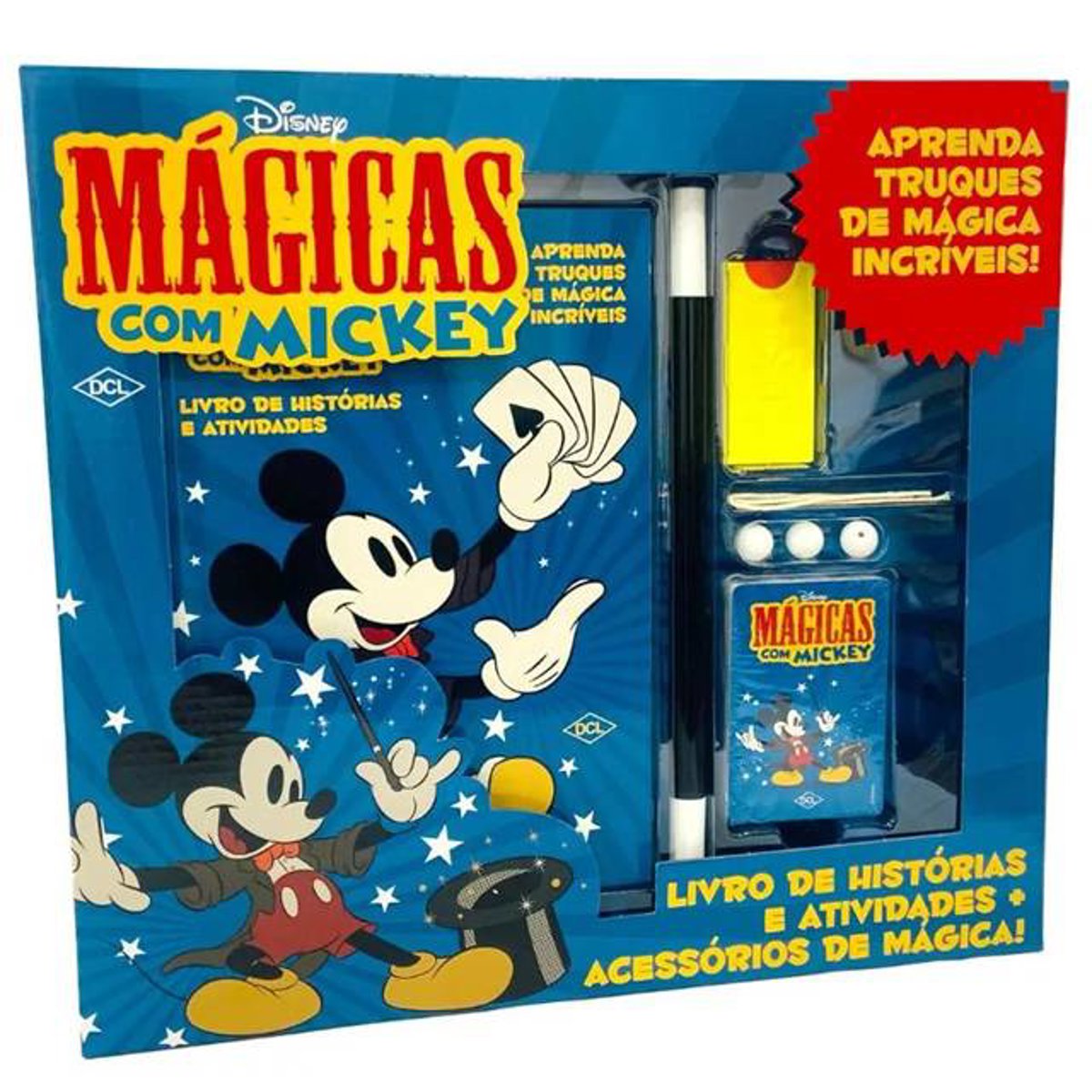 Prepare-se para uma incrível jornada ao mundo da magia com Mickey, Pato Donald e toda a turma Disney! Este divertido kit convida as crianças a viverem aventuras mágicas, testarem suas habilidades e descobrirem histórias encantadoras. Além do livro “Disney Mágicas com Mickey”, o conjunto inclui bolinha, cartas, corda, varinha e o acessório “esconde moeda”, oferecendo uma experiência completa para pequenos aprendizes de mágico. Durante as atividades, as crianças aprendem truques secretos que vão surpreender amigos e familiares, estimulando a criatividade, a coordenação e a imaginação. É diversão garantida para quem adora o universo da fantasia e do espetáculo.