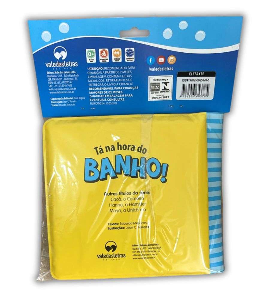 Tá na hora do banho! Divirta-se com esse livro de plástico lavável, fofinho e não tóxico que acompanham um bichinho de borracha. Ótimo para banho, praia e piscina.