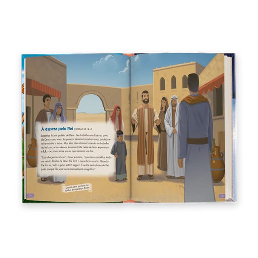 O livro contém 149 histórias bíblicas do Antigo e Novo Testamentos, com belas ilustrações e orações diárias. É acessível a crianças de 2 a 9 anos.