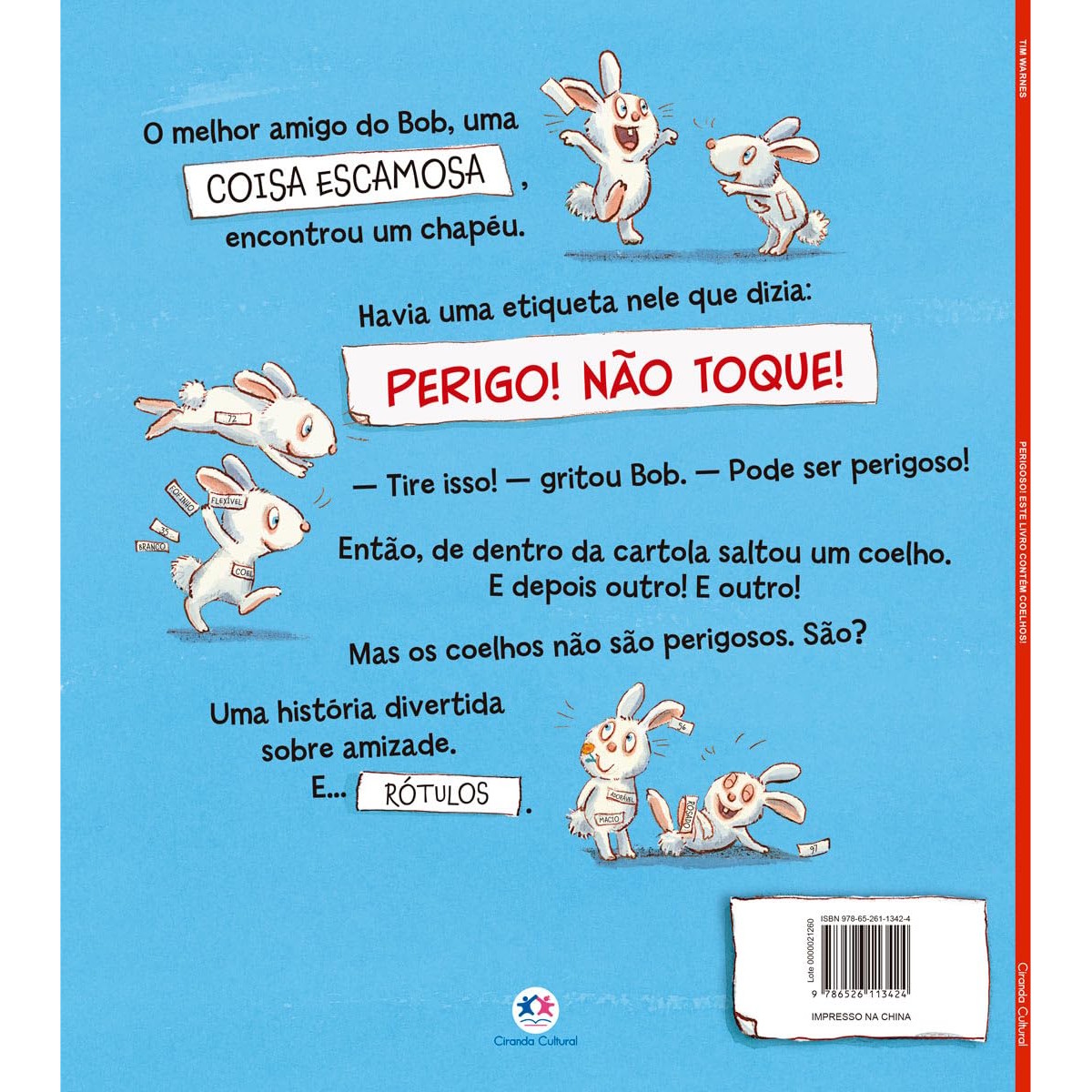 O melhor amigo do Bob, uma coisa escamosa, encontrou um chapéu. Havia uma etiqueta nele que dizia: PERIGO! NÃO TOQUE! Tire isso! gritou Bob. Pode ser perigoso! Então, de dentro da cartola saltou um coelho. E depois outro! E outro! Mas os coelhos não são perigosos. São? Uma história hilária sobre amizade. E rótulos...