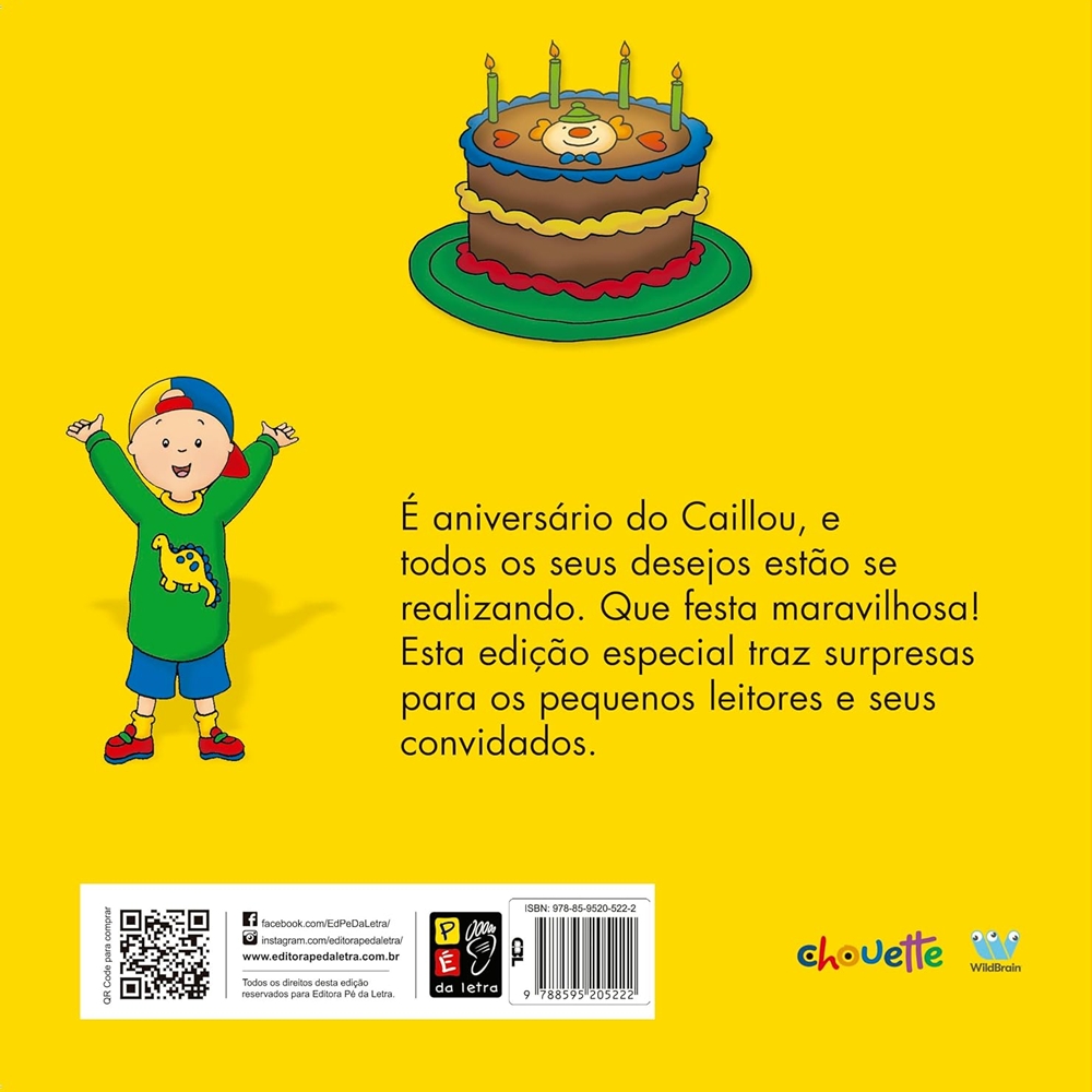 Neste livro especial de aniversário do Caillou, os pequenos leitores são convidados a participar de uma festa encantadora, onde desejos se realizam e cada página traz uma nova surpresa. Ao longo da história, as crianças acompanham o dia a dia do personagem e sua família, explorando emoções, aprendendo valores importantes e vivendo as pequenas grandes aventuras da infância.