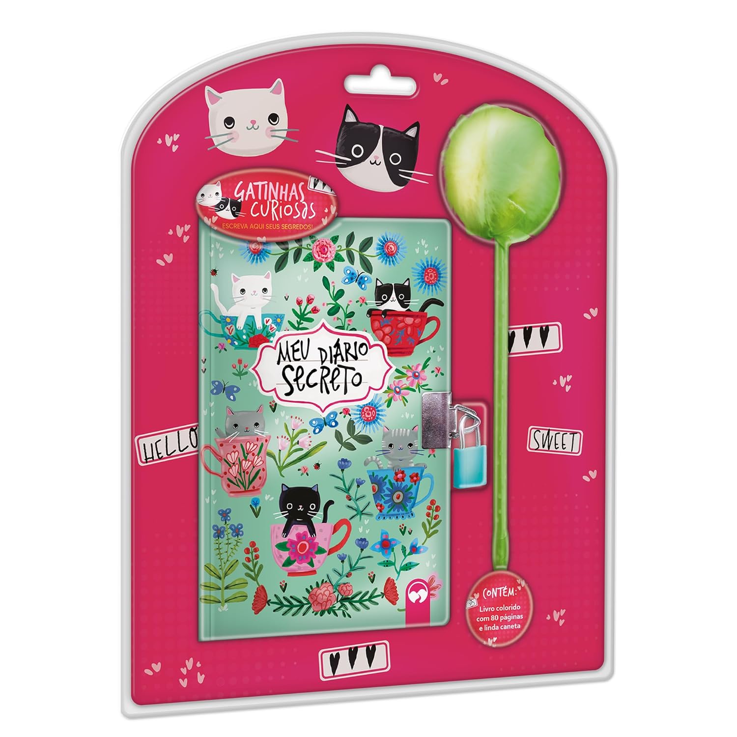 Livro Meu Diário Secreto com Caneta Pompom - Gatinhas Curiosas