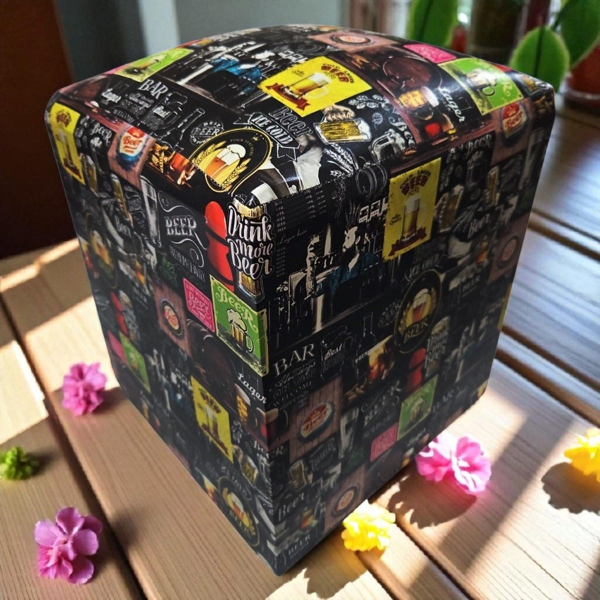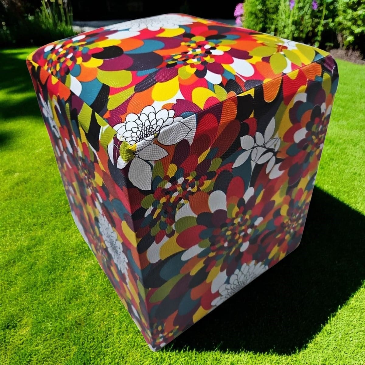 Puff Banqueta Quadrado Cubo Decorativo Courino e Suede